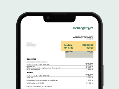 Første gang du logger ind, skal du tilknytte dit kundenr. Du finder dit kundenr. og din pinkode i øverste højre hjørne på din regning. Du kan tilknytte flere kundenr., hvis du ønsker det.